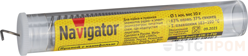 Припой 93 101 NEM-Pos01-63K-1-F10 (ПОС-63; колба; 1мм; 10 г) Navigator 93101 фото в каталоге от BTSprom.by