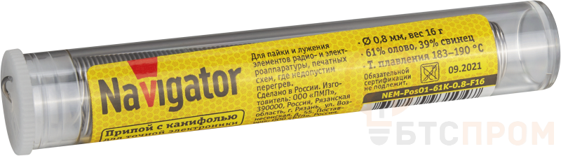 –Припой 93 104 NEM-Pos01-61K-0.8-F16 (ПОС-61; колба; 0.8мм; 16 г) Navigator 93104