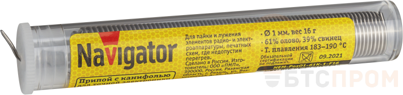 Припой 93 105 NEM-Pos01-61K-1-F16 (ПОС-61; колба; 1мм; 16 г) Navigator 93105 фото в каталоге от BTSprom.by