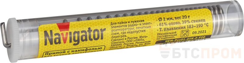 Припой 93 107 NEM-Pos01-61K-2-F20 (ПОС-61; колба; 2мм; 20 г) Navigator 93107 фото в каталоге от BTSprom.by