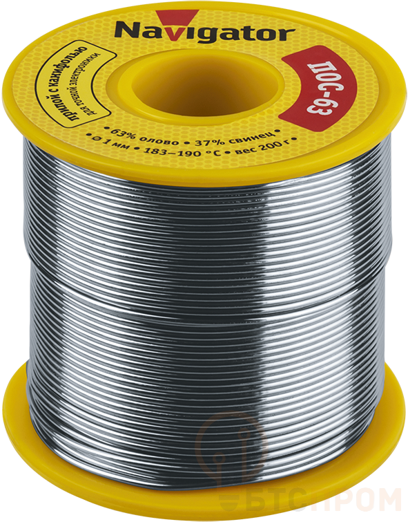Припой 93 778 NEM-Pos05-63K-1-K200 (ПОС-63 катушка 1мм 200г) NAVIGATOR 93778 фото в каталоге от BTSprom.by