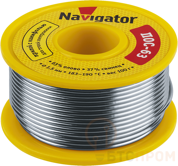 –Припой 93 782 NEM-Pos05-63K-1.5-K100 (ПОС-63 катушка 1.5мм 100г) NAVIGATOR 93782