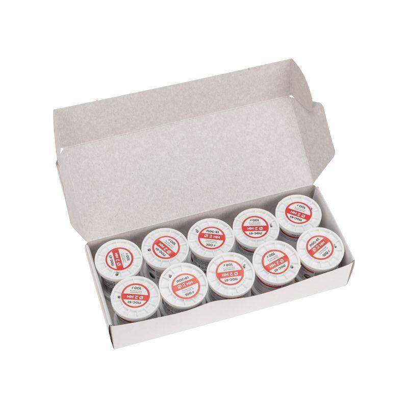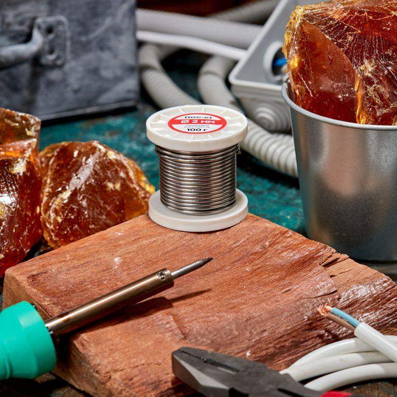 Припой с канифолью ПОС-61 используется для создания прочного и герметичного соединения деталей и их фиксации на плате. Предназначен для пайки и лужения деталей электроаппаратуры, радиоаппаратуры, точных приборов, печатных плат, медицинской аппаратуры. Наиболее эффективен в случаях, когда нельзя допустить перегрева места пайки. Нагреваясь до температуры +190°C припой расплавляется, смачивает спаиваемый металл и растекается, заполняя место между соединяемыми деталями. Представляет собой проволоку с каналом канифоли из сплава олова (61%) и свинца (39%). Изготовлен в соответствии с ГОСТ 21931-76. Отличается минимальным интервалом кристаллизации (7°C), устойчивостью к коррозии и удельной проводимостью (для токоведущих элементов). Фасовка – катушка с проволокой диаметром 2 мм. Температура плавления: солидус +183°C, ликвидус +190°C. Пайка металлов: сталь, латунь, бронза, медь, нержавейка.