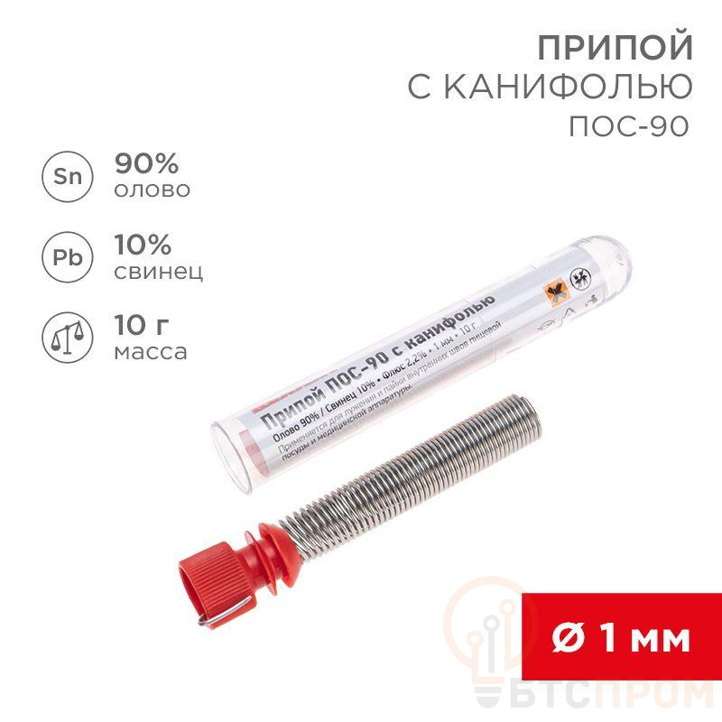 Оловянно-свинцовый припой ПОС-90 является сплавом 90% олова и 10% свинца. Характеристики: Сплав ПОС-90 имеет температуру ликвидус: 220 °С, температуру солидус 183 °С и интервал кристаллизации 37 ° Плотность составляет: 7,9 кг/м? Данный сплав обладает низким удельным электросопротивлением, составляющим: 0,12 Ом мм2/м Временное сопротивление разрыву составляет: 4,9 кгс/мм2 (48 МПа) Ударная вязкость: 4,2 кгс/см2 Твердость по Бриннелю: 15,4 HB Область применения припоя ПОС 90 включает в себя лужение и пайку внутренних швов пищевой посуды и медицинской аппаратуры.