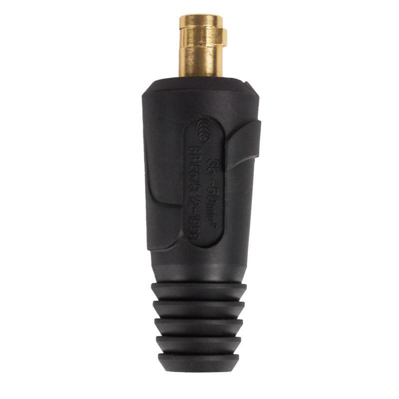 Вилка кабельная REXANT – быстросъемный соединительный разъем (штекер), который монтируется на кабель сварочных аксессуаров (держатель электрода на проводе или зажим массы) для последующего простого и надежного соединения к корпусу сварочного аппарата, при наличии на нем соответствующего разъема или с кабелем с целью общего увеличения длины кабеля. С этим товаром покупают: розетка кабельная (гнездо) СКР (гн.) 10-25 (артикул 16-0883) и розетка панельная (гнездо) модель СКРП (гн.) 10-25 (артикул 16-0880) – ответные части соединительного разъема с разным видом монтажа по необходимости. Вид разъема: штекер Номинальный сварочный ток: 200 А Минимальное сечение жилы кабеля: 10 мм2 Максимальное сечение жилы кабеля: 25 мм2 Напряжение: до 50 В Вид сварки, с которой используется: MIG/MAG; MMA; TIG Вид монтажа: на кабель Сварочные аксессуры REXANT изготавливаются только из качественных материалов, что обеспечивает безопасное использование и предохраняет от замыканий и пожароопасных ситуаций.