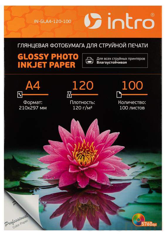 Фотобумага GLA4-120-100 глянцевая 120г/кв.м А4 100 листов для струйной печати Intro Б0060496