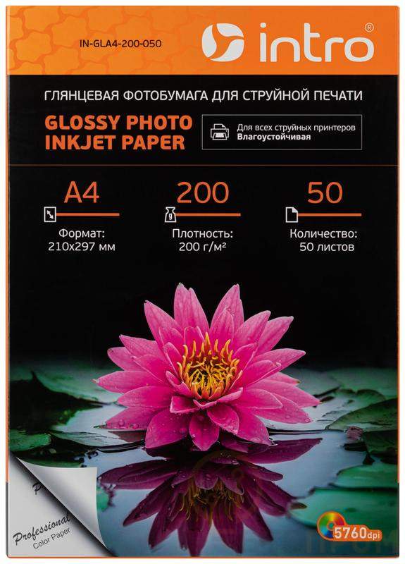 –Фотобумага GLA4-200-050 глянцевая 200г/кв.м А4 50 листов для струйной печати Intro Б0056923