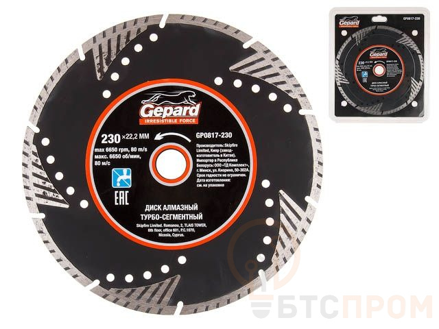 Свойства: высокая скорость реза и высокий ресурс использования. Защитные сектора обеспечивают защиту режущего слоя от бокового износа. Турбированная форма обеспечивает плавный безударный рез. Особенности конструкции способствуют дополнительному отводу тепла и увеличению срока службы оснастки. Продолжительный ресурс работы обеспечивается высокой концентрацией алмазов, улучшенным качеством алмазных зерен и оптимально подобранной металлической связкой;