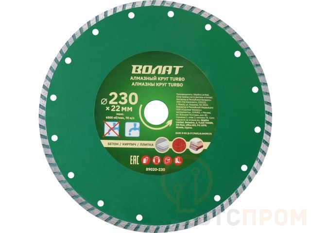 Тип: алмазный круг универсальный Turbo для сухой и мокрой резки гранита, кирпича, бетона, строительного камня, тротуарной плитки и других твердых материалов. Высокая скорость резания. Сухой рез. Охлаждение водой увеличивает ресурс круга;