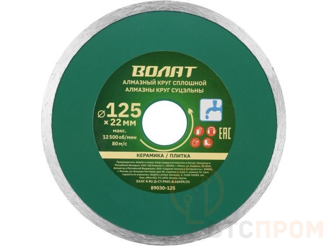 Тип: алмазный круг сплошной для точной резки природного и искусственного камня, кафеля, керамической плитки, мраморных плит и других строительных материалов с подачей воды для принудительного охлаждения;