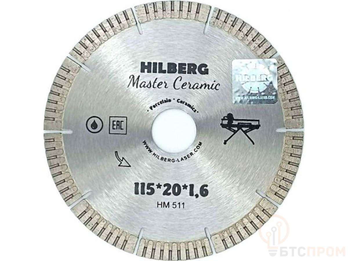 Диск алмазный отрезной 115*20 Hilberg Master Сeramic HM511профессиональный диск для работы по керамике и керамограниту на плиткорезных станках Wandeli, Shijing и станках других производителей