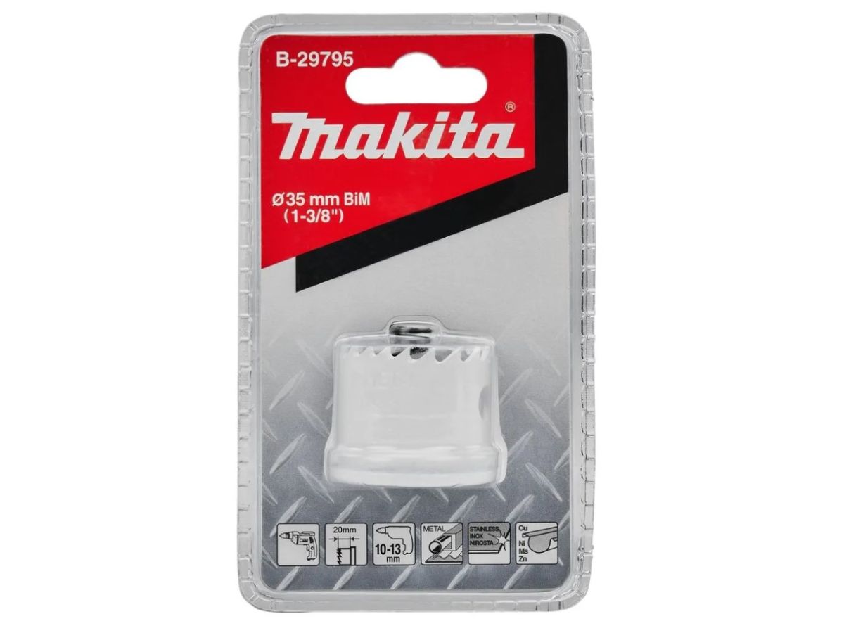 Биметаллическая коронка применяется в комплекте с дрелями. Используется совместно с адаптером и центрирующим сверлом для проделывания отверстий в листовом металле. Коронка оснащена нижнем ограничителем (фланцем/шляпкой), глубины сверления достигает 20 мм. В комплекте идет пружина, которая устраняет просверленный материал из коронки. Назначение - сталь, алюминий, цветные металлы, нержавеющая сталь.
