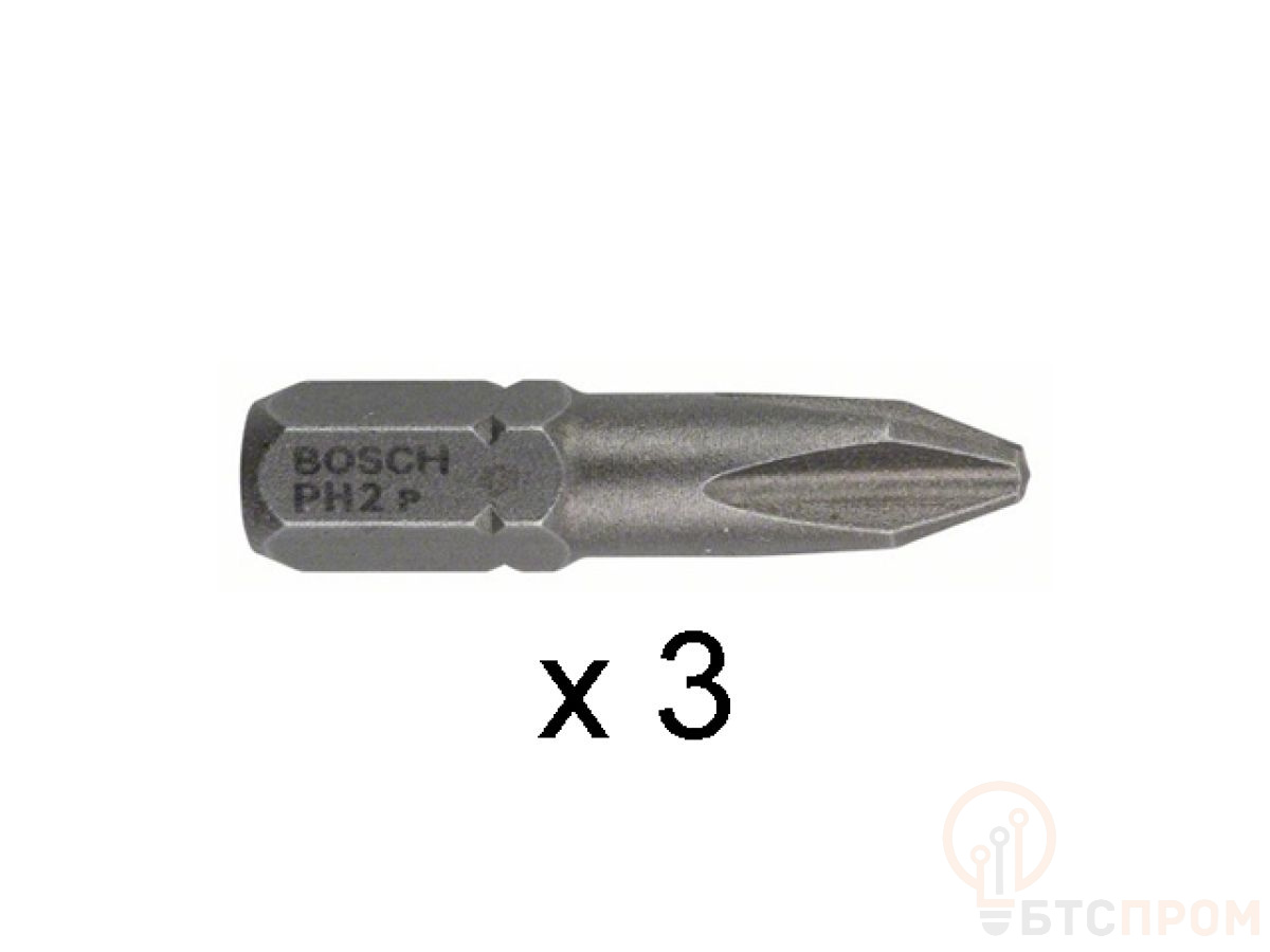 Насадка (бита) крестообразная PH2 25 мм BOSCH в розничн. упак. (3 шт.) (посадочн. шестигранник 1/4 ") 2607001511