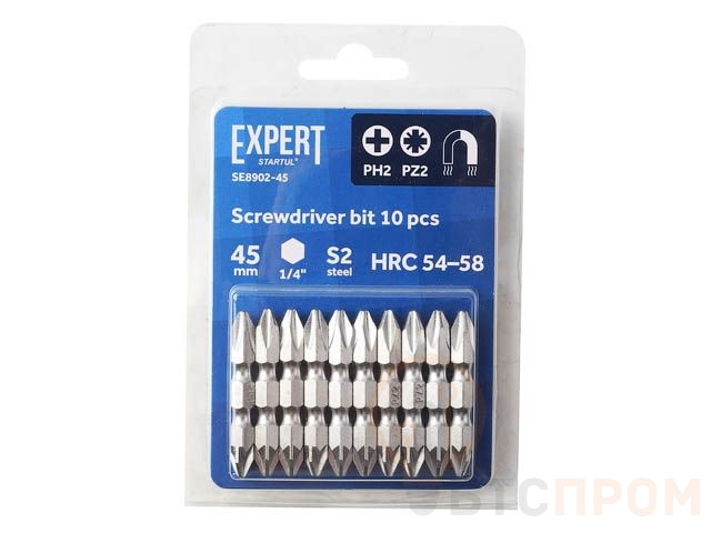 Насадка крестообразная PH2-PZ2 45мм 10шт EXPERT STARTUL (SE8902-45) (бита Phillips-Pozidrive магнитная) SE8902-45