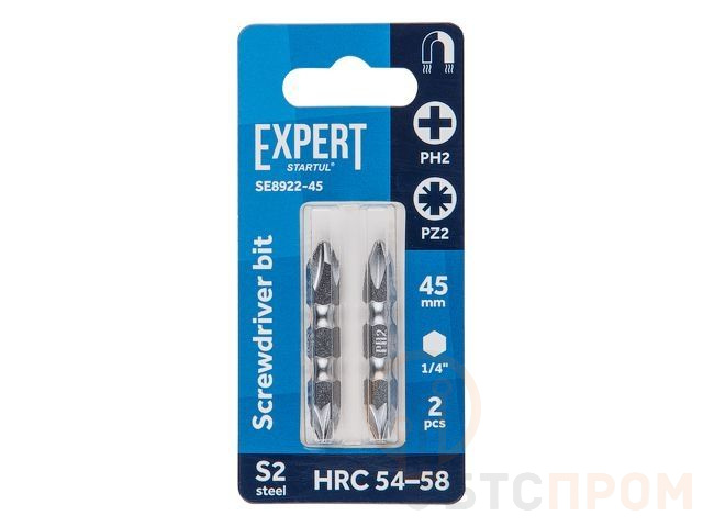 Насадка крестообразная PH2-PZ2 45мм 2шт EXPERT STARTUL (SE8922-45) (бита Phillips-Pozidrive магнитная) SE8922-45