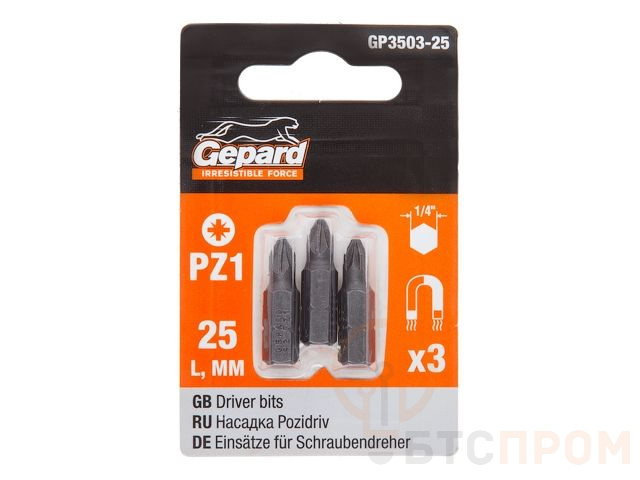 Насадка крестообразная PZ1 25мм 3шт GEPARD (GP3503-25) (бита Pozidrive позидрив сталь S2 магнитная) GP3503-25
