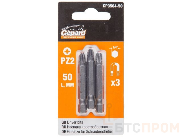 Насадка крестообразная PZ2 50мм 3шт GEPARD (GP3504-50) (бита Pozidrive позидрив сталь S2 магнитная) GP3504-50
