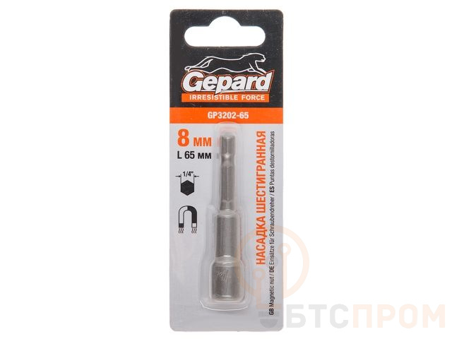 Насадка шестигранная магнитная 10х65мм GEPARD (GP3203-65) (Hex Shank Hexagon бита с торцевой головкой сталь магнитная) GP3203-65