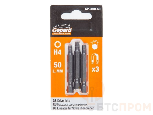Насадка шестигранник 4мм 1/4" 50мм 3шт GEPARD (GP3400-50) (H4 Hex Shank Hexagon бита под конфирмат сталь S2 магнитная) GP3400-50