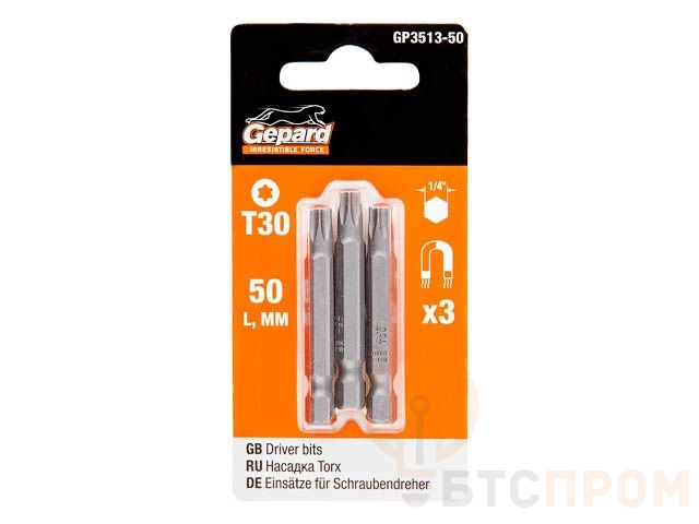 Насадка TORX T30 50мм 3шт GEPARD (GP3513-50) (бита звездочка шестилучевая звезда сталь S2 магнитная) GP3513-50
