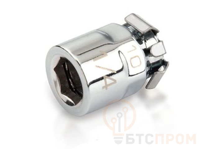Держатель бит 1/4" изготовлен из хром ванадиевой стали. Предназначен для держания насадок с шестигранной частью под 1/4". Фиксация насадок внутри обеспечивается благодаря специальному пружинному кольцу. Применим совместно с гаечными накидными ключами на 10 мм.