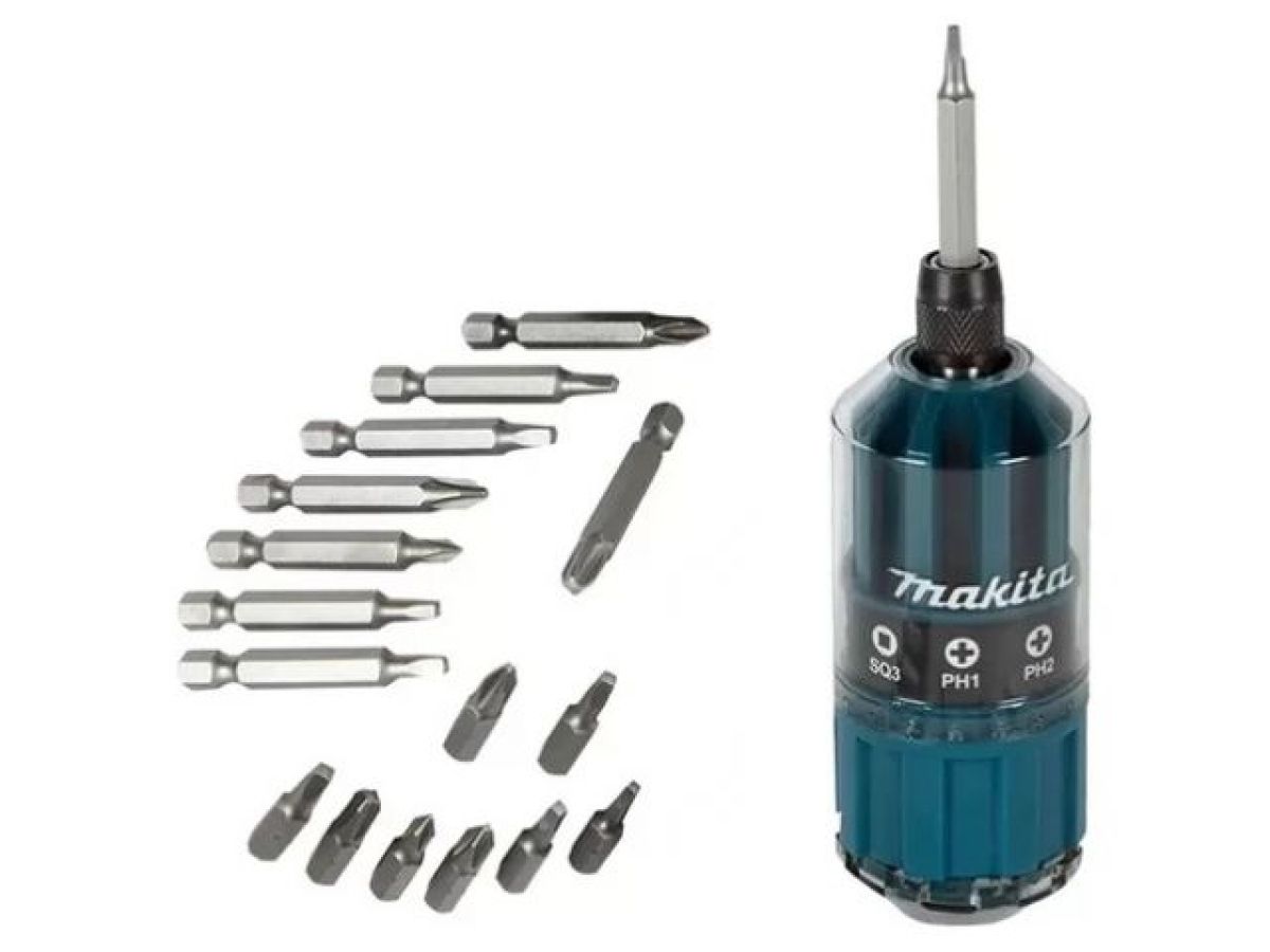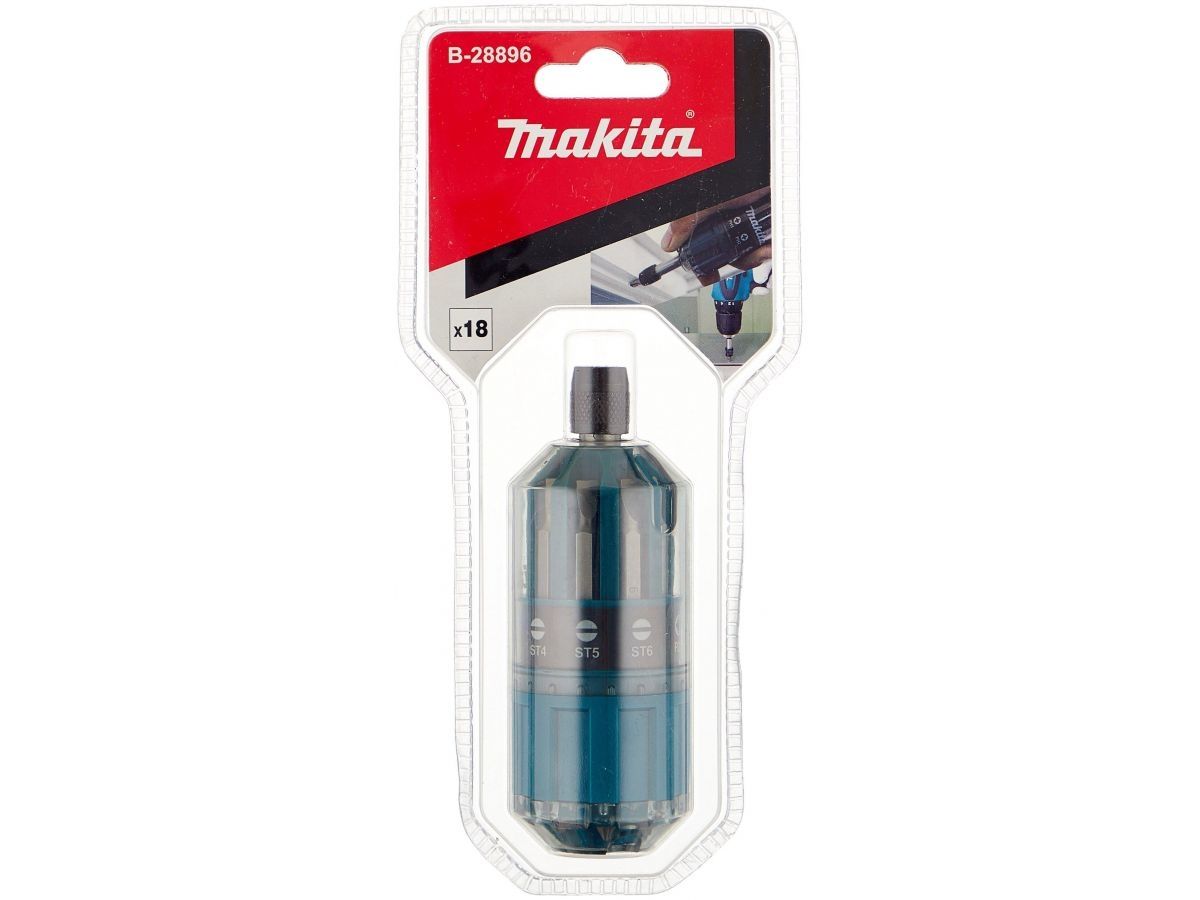 Набор бит MAKITA 18 предметов (B-28896) имеет необычную форму для транспортировки и хранения. Корпус выполнен в виде рукоятки, в которой находятся биты. За счет такого исполнения и наличию магнитного держателя биты можно использовать как отдельно, там и совместно с шуруповертом.