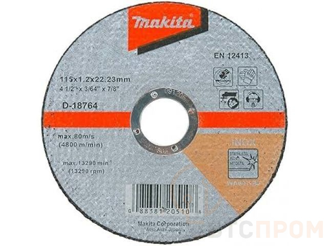 Отрезной абразивный диск Makita D-18764 используется в угловых шлифовальных машинах для работы по нержавеющей стали. Оснастка имеет твердость - 60.
