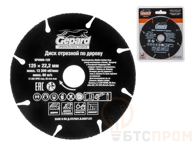 Диск отрезной 125x22.2 мм по дереву GEPARD (ламинату, дереву с гвоздями, для УШМ, пильный, карбид вольфрама) GP0908-125