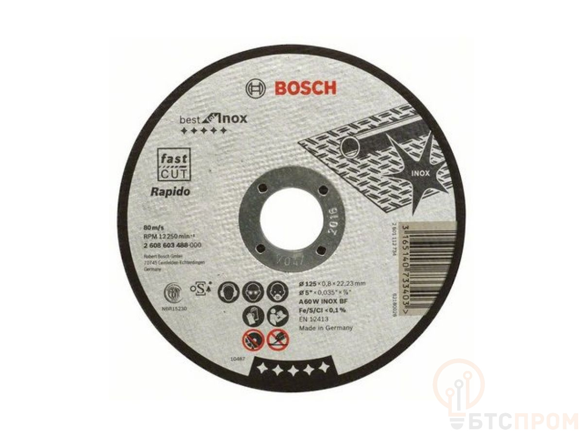 Круг отрезной 125х0.8x22.2 мм для нерж. стали Best BOSCH (прямой, Rapido) 2608603488 фото в каталоге от BTSprom.by
