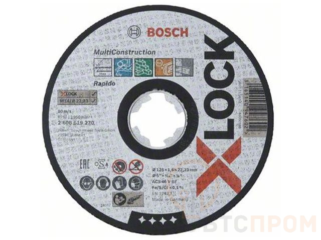 Круг отрезной 125х1.6x22.2 мм универс. X-LOCK Multi Material BOSCH (прямой, подходит для всех типов УШМ) 2608619270