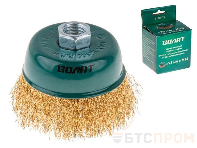 Щетка д/шлиф.маш."чашка" гофр. 75мм ВОЛАТ (для УШМ шлифмашины болгарки М14 торцевая крацовка) 81030-75