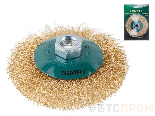 Щетка дисковая гофр.100мм/M14 ВОЛАТ (для УШМ шлифмашины болгарки М14 тарелка торцевая крацовка) 81050-100