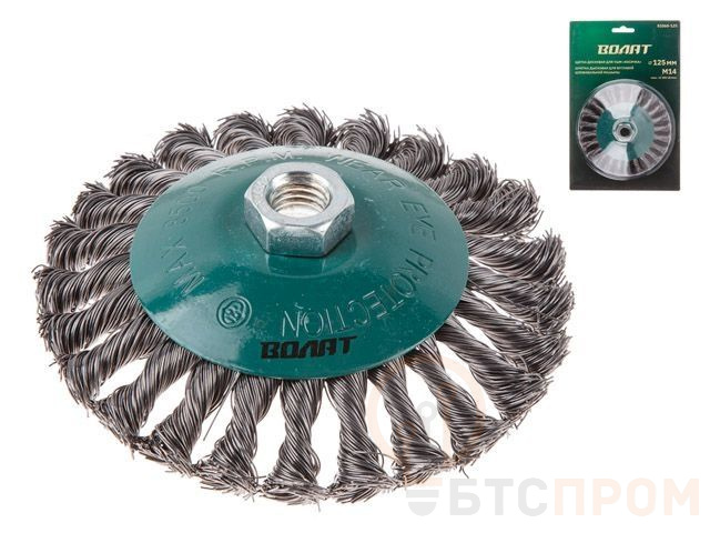 Щетка дисковая косич.125мм/M14 ВОЛАТ (для УШМ шлифмашины болгарки М14 тарелка торцевая крацовка) 81060-125