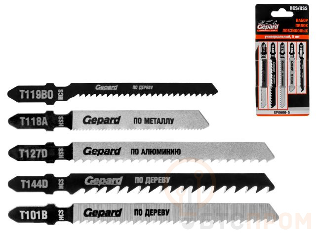 Набор пилок лобз. универсальный 5шт. GEPARD (GP0600-5) (T144D, T119BO, T101B, T127D, T118A) GP0600-5