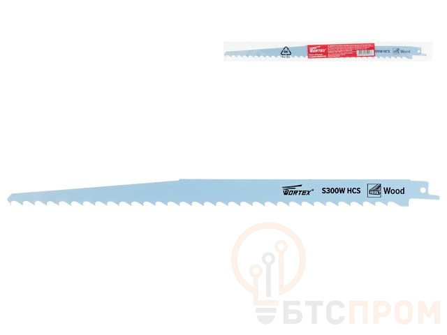 Пилка сабельная по дереву S300W (1 шт.) WORTEX высокоуглеродистая сталь HCS, 300 мм длина (пропил криволинейный, грубый, для базовых работ) SSB3003H0018