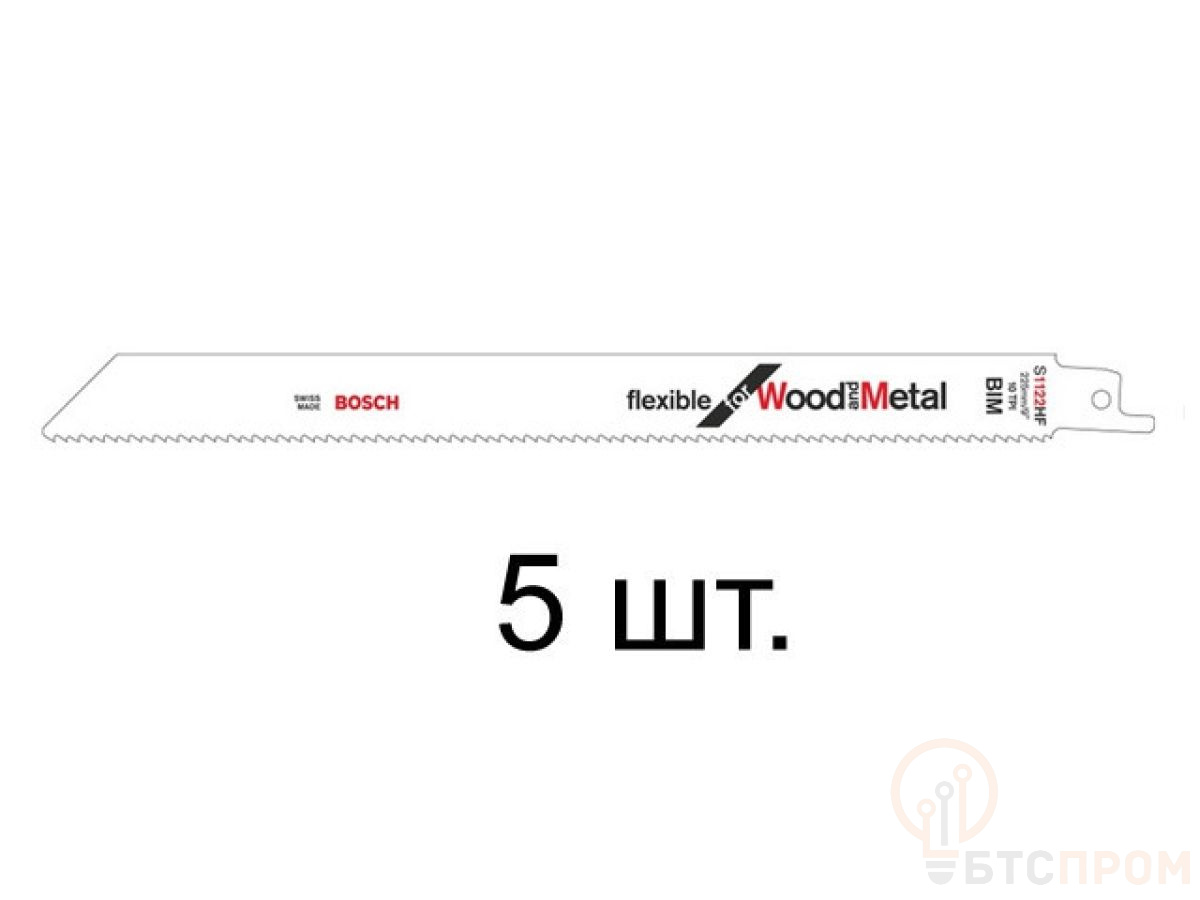 Пилка сабельная по дереву с гвоздями S1122HF (5 шт.) BOSCH (пропил прямой, тонкий, для подгоночных пропилов) 2608656021