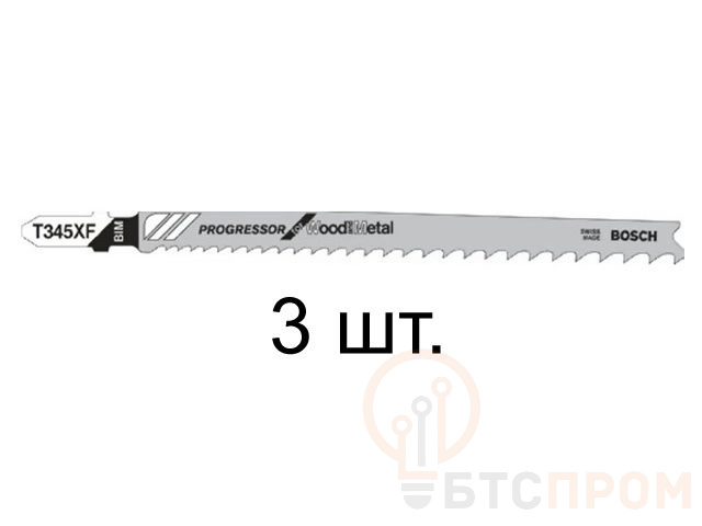 Пилка лобз. по дереву с гвоздями T345XF (3 шт.) BOSCH (пропил прямой, грубый, быстрый рез в материале любой толщины) 2608634993