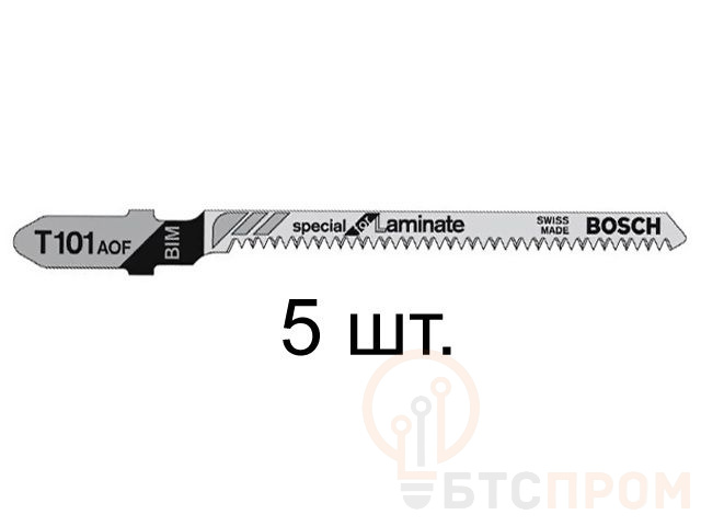 Пилка лобз. по дереву/ламинату T101AOF (5 шт.) BOSCH (пропил криволинейный, тонкий, для точного и чисторго реза в ламинате) 2608634233