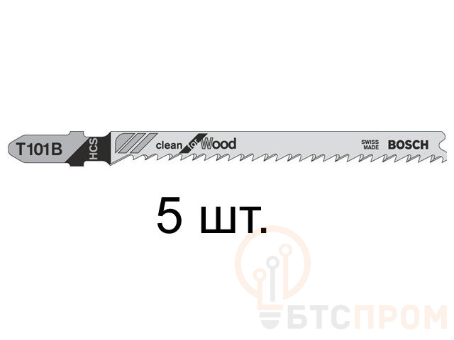 Пилка лобз. по дереву T101B (5 шт.) BOSCH (пропил прямой, тонкий, аккуратный и чистый рез) 2608630030