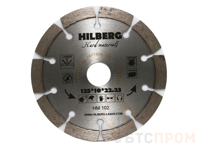 Алмазный круг 125х22,23 мм по ж/бетону Hard Materials HILBERG (Лазерная сварка. Обрабатываемый материал :кирпич, керамогранит, армированный бетон, бетон, бордюрный) HM102