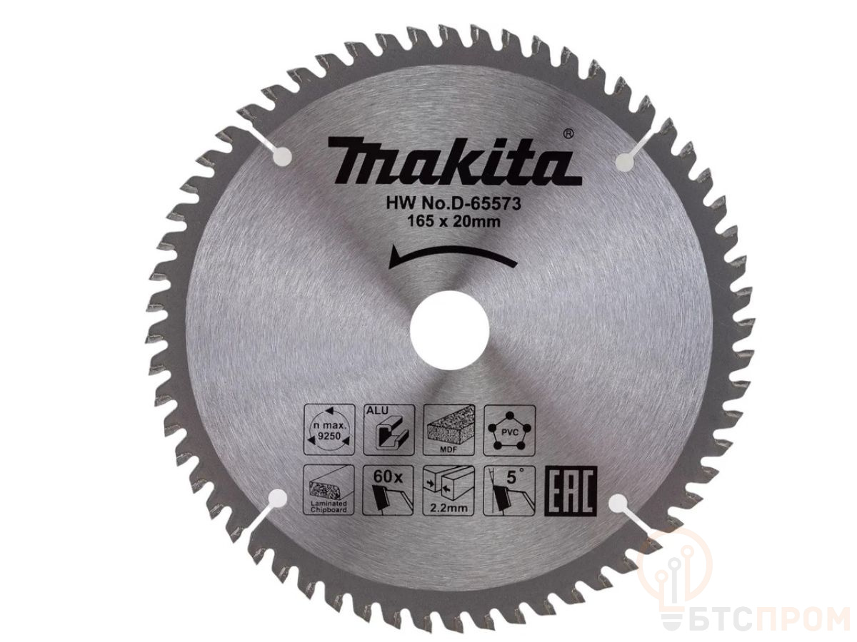 Пильный диск универсальный, STANDART, 165x20x2.2x60T, Makita D-65573. Диск Makita предназначен для резки дерева, алюминия, МДФ, ПВХ, ДСП. Специальная форма зуба (TCG) обеспечивает качественный ровный распил. Благодаря особой форме зубов обеспечивается высокая производительность и надежность работы. Пильные диски выполнены из высококачественных материалов и имеют длительный срок службы. Характеризуется высокой износостойкостью и долговечностью. Оптимальный диаметр диска позволяет использовать его наиболее эффективно. В качестве дополнительного плюса можно отметить тот факт, что диск можно легко установить в инструмент.