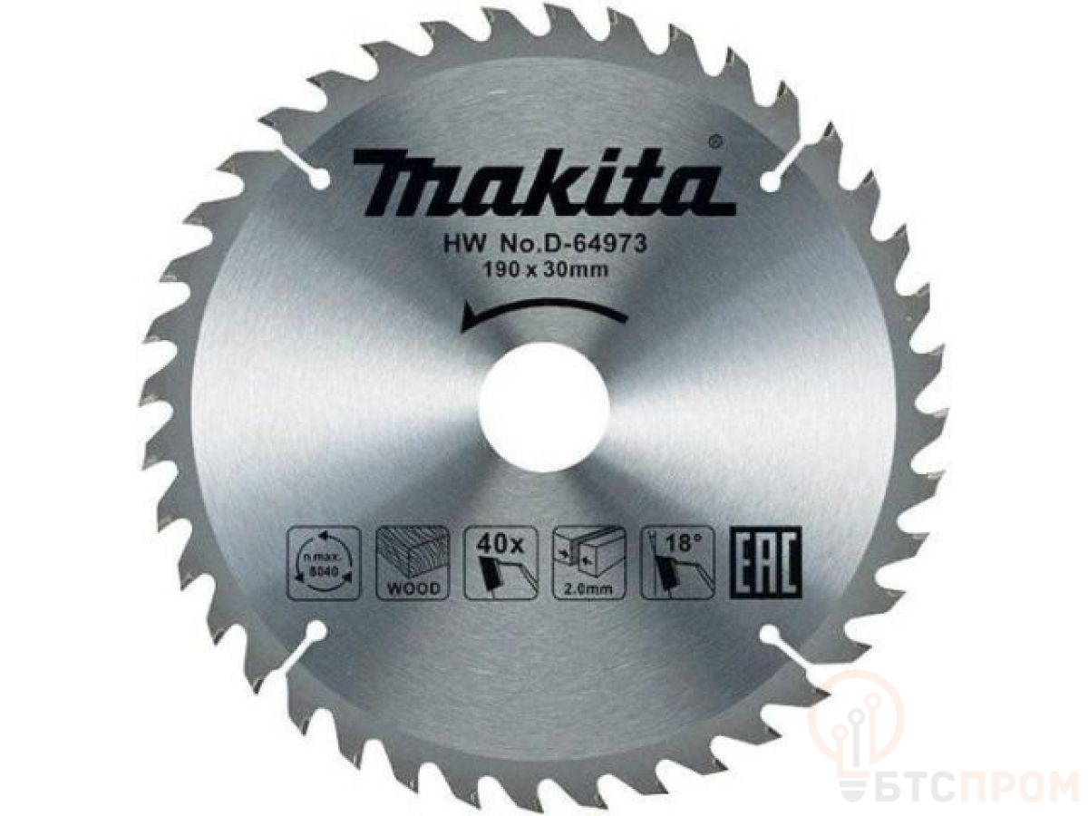 Пильный диск по дереву Makita Standard с твердосплавными напайками. Диаметр 190 мм, посадочное отверстие 30 мм, 40 зубов