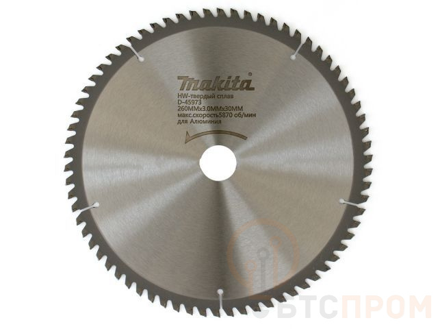 Пильный диск для алюминия Makita D-45973, предназначен для распила алюминия, меди, латуни, бронзы и других, не содержащих железо металлов.