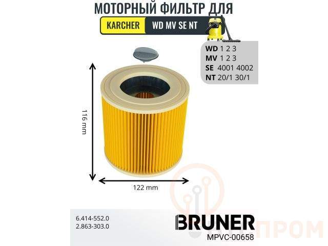 Фильтр моторный HEPA для пылесосов Karcher серии WD 1,2,3 MV 1,2,3 SE 4001,4002 NT20/1, 30/1 (WD 1,2,3 MV 1,2,3 SE 4001,4002 NT20/1, 30/1) (BRUNER) MPVC-00658