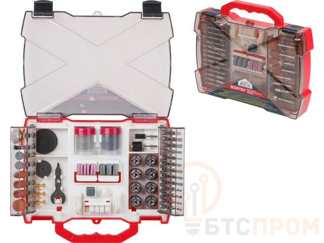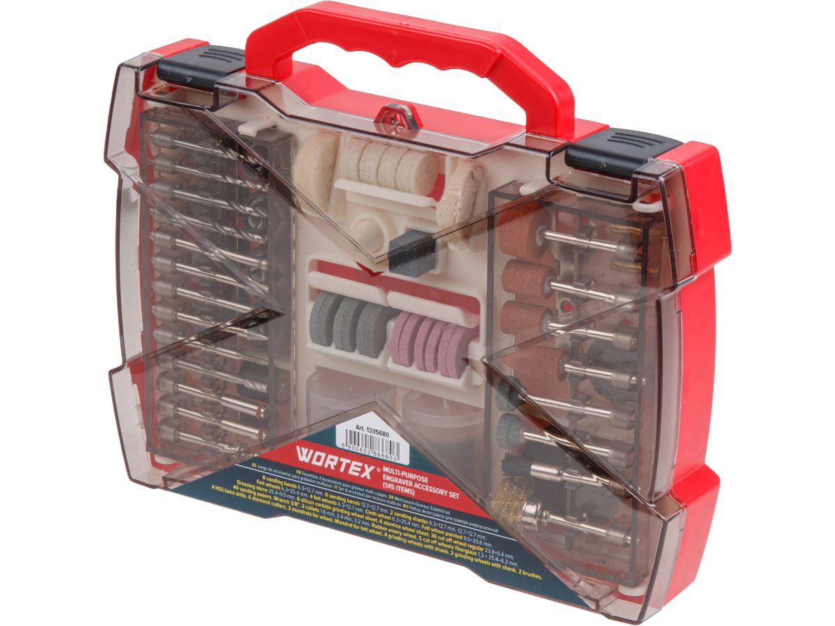 Набор аксессуаров для гравера WORTEX 145 предметов (универсальный) (Цанги: 1,6 мм, 2,4 мм, 3,2 мм) 1335680