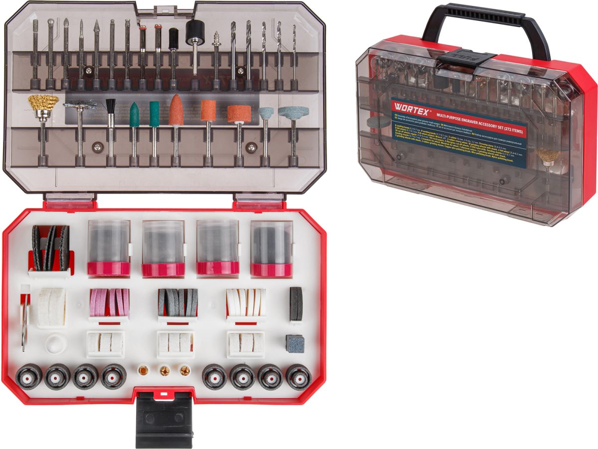 Набор аксессуаров для гравера WORTEX 272 предметов (универсальный) (Цанги: 1,6 мм, 2,4 мм, 3,2 мм) 1335681