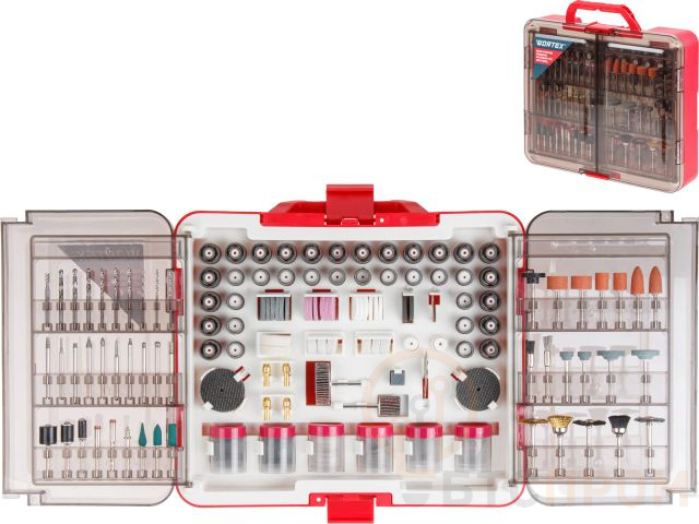 Набор аксессуаров для гравера WORTEX 418 предметов (универсальный) (Цанги: 1,6 мм, 2,4 мм, 3,2 мм) 1335682