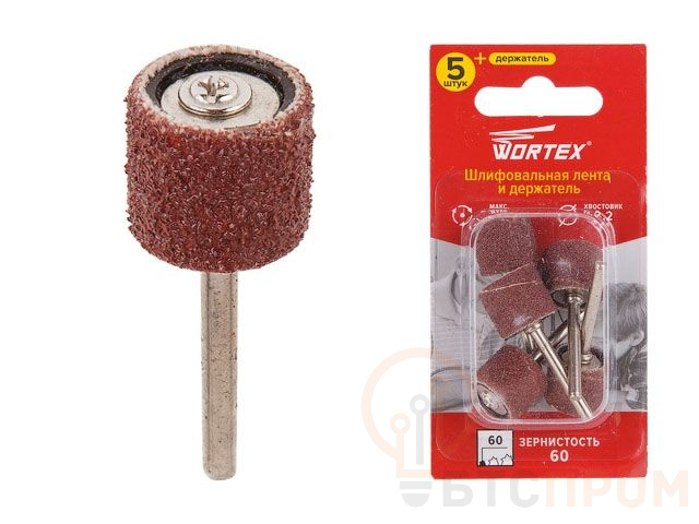 Шлифовальная лента 13 мм, зерно 60 + держатель WORTEX (раб. диам. 13 мм, диам. хвостовика 3.2 мм, зерно 60, 35000 об/мин) ETDB3215018
