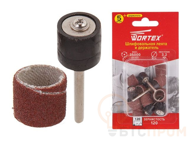 Шлифовальная лента 15 мм, зерно 120 + держатель WORTEX (раб. диам. 15 мм, диам. хвостовика 3.2 мм, зерно 120, 35000 об/мин) ETDA3215018