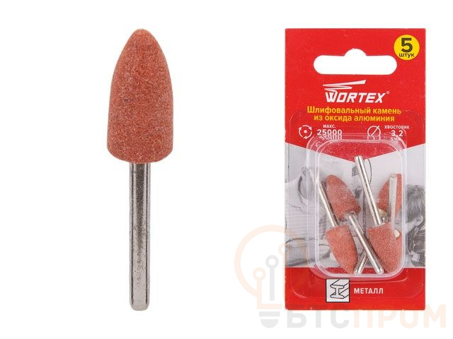 Шлифовальный камень из оксида алюминия 9.5 мм WORTEX (раб. диам. 9.5 мм, диам. хвостовика 3.2 мм, 25000 об/мин) ETCA3229518